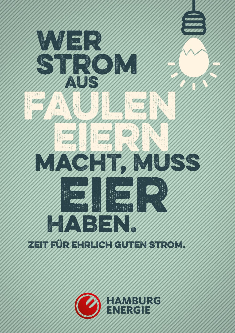 ⚡️Dieser nachhaltige lokale Stromanbieter hatte zum Ziel 1.000 Neukunden zu gewinnen. Zusammen mit Claudi Bach entwickelte ich diese humorvolle Haltungskampagne und verhalf Hamburg Energie bei der Verzehnfachung ihres ursprünglichen Ziels.